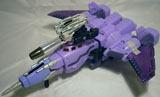Recolors: This mold was recolored into Gentei Strafe (2009, Japan), Challenge at Cybertron Cyclonus (2010, Asia), Transformers Collectors' Club Shattered Glass Cyclonus (2010), Reveal the Shield Cyclonus (2011), E-Hobby United Cyclonus (2011, Japan), and Botcon 2014 Ferak (2014). Nightstick was recolored into United Nightstick (2012, Japan), Vector Oracle (2012, Japan), and Botcon 2015 Nebulon (2015). |