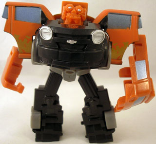 Autobot Skids and his twin brother Mudflap team up once again to take on the Decepticons. This time, they're venturing off-road to hunt a Decepticon target through the rugged, muddy mountains of the American west. It'll take all of their horsepower and driving skill to track their target in this punishing environment. |