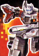 at 80 mph, has razor-sharp teeth. In robot mode, uses rust-ray rifle