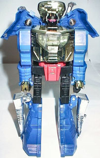 Grimlock is the most fearsome and powerful Dinobot. Although dedicated to the Autobot cause, he resents authority. He is a valiant warrior, but is also cold and merciless with contempt for the weak, including all humans. He has great strength and his jaws can break almost anything in two. He carries an energy sword and galaxial rocket launcher in Dinobot Mode. Other than arrogance and lack of speed, he has no real weaknesses. |