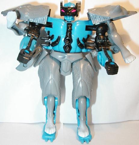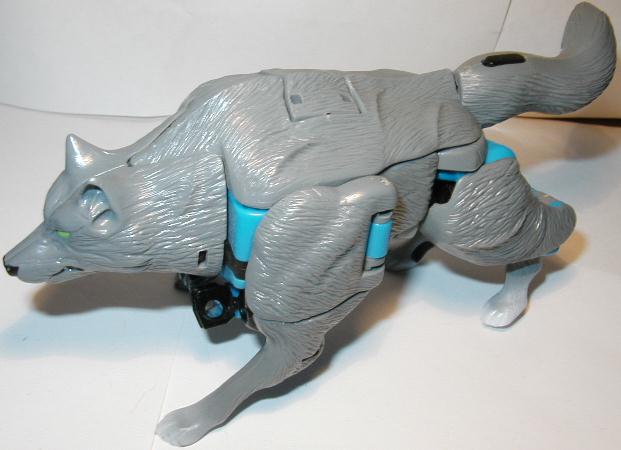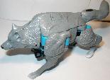 A pair of glowing eyes pierce the night like twin lasers scanning for prey. Steel-plated fangs glisten as the full moon rises. A deep growl rumbles in the night air. It is Wolfang, the warrior beast, searching for Predacon enemies! Swift and agile, prefers to hunt cloaked as an animal. But, quickly converts to robot mode for battle, when he can best utilize the secret attack launcher disguised as his tail!