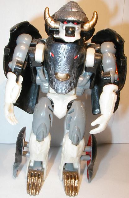 As stubborn as he is strong, nothing can stop the brawny Bonecrusher when he charges into battle to crack some skulls! Like a living locomotive with a one-track mind, all he wants to do is fight, fight, fight! Optimus Primal tries to get him to lighten up, if only to prevent him from overheating an internal coolant co-processor, but Bonecrusher would rather be out pounding his enemies into cyber scrap. His favorite attack strategy is to stun opponents with a dizzying head-butt, and then finish them off with a fast firing missile shot straight from his mouth!