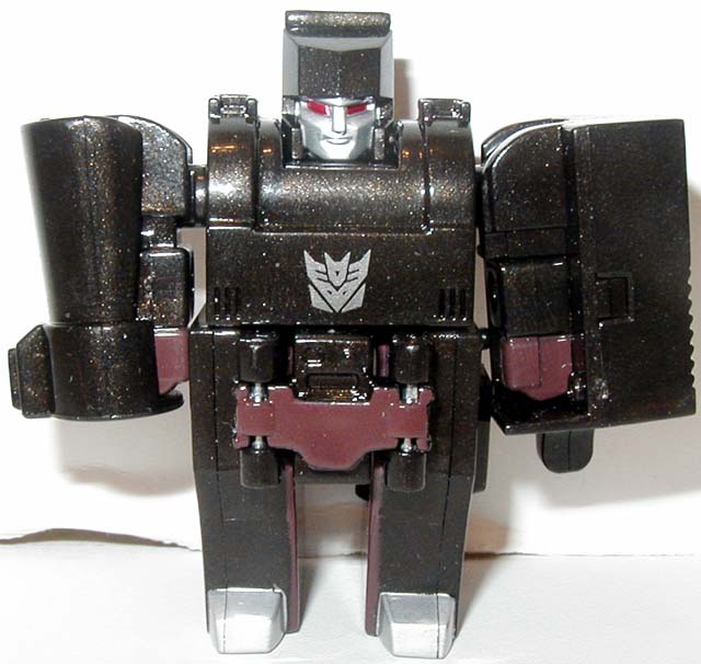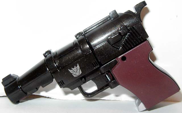 Megatron was also included as an accessory with: Super Collection Figure Act 2 Convoy w/jetpack (2001), Super Collection Figure Act 6 Convoy w/Megatron Gun (2002), Super Collection Figure Act 6 Pewter Convoy w/Megatron Gun (2002), Japan Wonder Festival Super Collection Figure Convoy (2002), Mega SCF Metallic Version Convoy (2002), Mega SCF Starscream (2002), Transformers Collection Starscream (2003), Masterpiece MP-1 Convoy (2003), 20th Anniversary Optimus Prime (2004), Masterpiece MP-2 Ultra Magnus (2005), Revoltech Starscream (2008), Masterpiece MP-1B Convoy Black Version (2010), Masterpiece MP-4S Convoy Sleep Mode (2010), San Diego Comic Con 2011 G.I. Joe and the Transformers Starscream (2011), Masterpiece MP-13 Soundwave (2013), Toys R Us Masterpiece Soundwave (2013), Masterpiece MP-13B Soundblaster (2014), Masterpiece MP-11SW Skywarp (2015), and Walmart Reissue Starscream (2018).