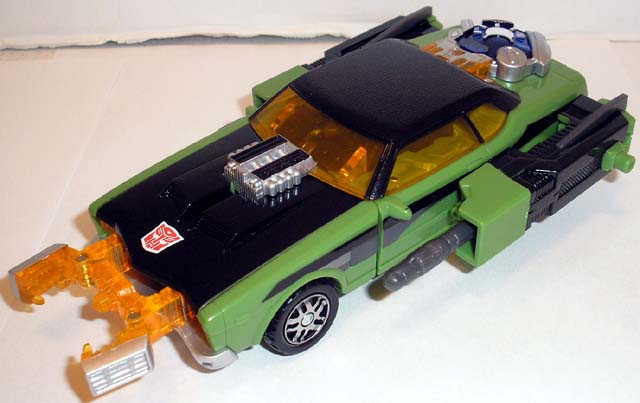 A few years of experience in the Energon Wars have gone a long way in Downshift. Once an impulsive speedster, he has learned patience and consideration from his mentor Hot Shot. Where he once would have raced straight into battle against even overwhelming odds, relying on his speed to get him out of tight spots, he has now learned to observe and enter a fight cautiously. His keen eye and quick reflexes allow him to exploit even the smallest opportunity to bring down Decepticons much bigger and stronger than him.
