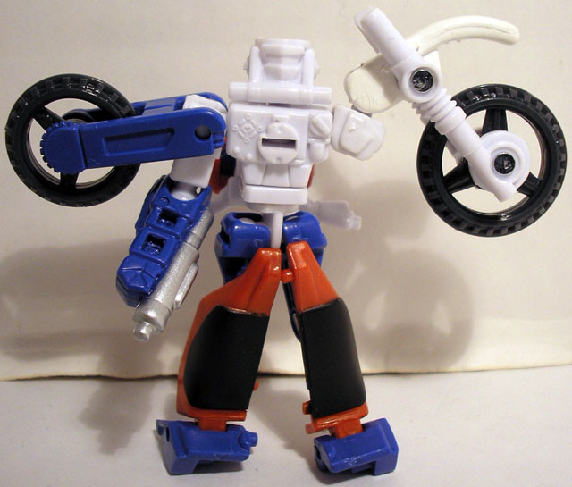 High Wire and his teammates on the Street Action Team returned to Cybertron as heroes after the Energon Battles. As a result, they were among the first warriors enlisted by Anti-Blaze and the Mini-Con Council of Sages to fight the Mini-Con rebels. He is reluctant to return once again to battle, but he also knows that - combined as Perceptor - the Street Action Team is the most powerful warrior among the Mini-Cons, and the only one with a chance of going up against the Deep Space Mini-Con team and winning.