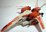When the full extent of the treachery of the Decepticons became clear however, Jetfire joined the Autobots without reservation. The anger he felt as his betrayal by Starscream never waned. He fought his former friend at every turn. The sky over many a battlefield filled with fire as the two master fliers engaged in dog fight after dog fight, neither ever completely destroying the other.
