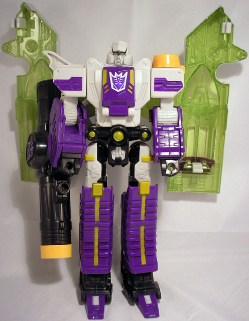 Megatron was also included as an accessory with: Super Collection Figure Act 2 Convoy w/jetpack (2001), Super Collection Figure Act 6 Convoy w/Megatron Gun (2002), Super Collection Figure Act 6 Pewter Convoy w/Megatron Gun (2002), Japan Wonder Festival Super Collection Figure Convoy (2002), Mega SCF Metallic Version Convoy (2002), Mega SCF Starscream (2002), Transformers Collection Starscream (2003), Masterpiece MP-1 Convoy (2003), 20th Anniversary Optimus Prime (2004), Masterpiece MP-2 Ultra Magnus (2005), Revoltech Starscream (2008), Masterpiece MP-1B Convoy Black Version (2010), Masterpiece MP-4S Convoy Sleep Mode (2010), San Diego Comic Con 2011 G.I. Joe and the Transformers Starscream (2011), Masterpiece MP-13 Soundwave (2013), Toys R Us Masterpiece Soundwave (2013), Masterpiece MP-13B Soundblaster (2014), Masterpiece MP-11SW Skywarp (2015), and Walmart Reissue Starscream (2018).
