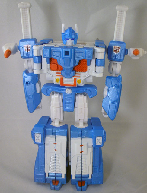 No Autobot is more pure a soldier than Ultra Magnus. He is a supreme battlefield commander who combines an encyclopedic knowledge of pure tactics with a talent for improvisation that allows him instant and total control over almost any combat situation. When other Autobots look at the tide of battle and see a lost cause, he displays a sixth sense for knowing what chances to take and when to pull victory from the certain jaws of defeat. Only rarely do his guesses prove wrong. He is a brave, capable warrior with no interests outside of his command, and no will or desire except victory for the Autobots.