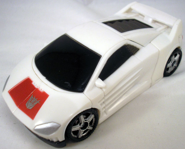 Decepticon scout Brakedown avoids contact with the enemy at all costs. His job is to observe and report, not fight. That's why he's geared for speed, not battle. Unfortunately for him, Mudflap has other ideas, and now he finds himself racing for his life away from the determined Autobot warrior. |
