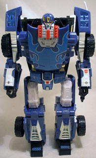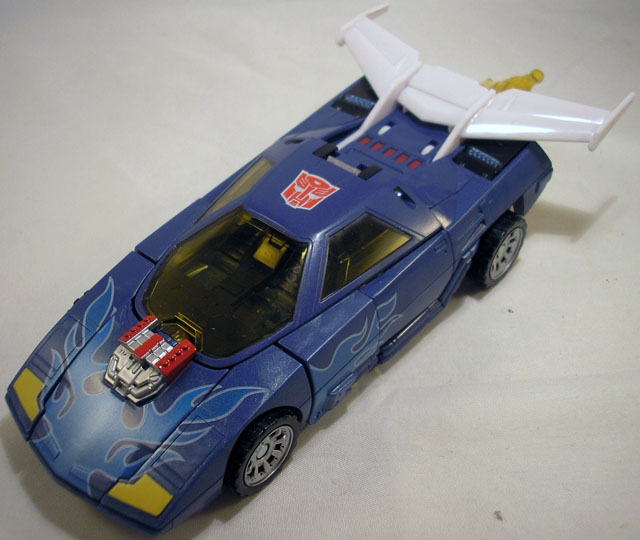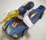 Side Burn is a born exhibitionist; if its loud, fast, or haphazard, you can't bet he's tried it. Then bragged about it at a local Energon pub. Upgraded with a new Spark engine, Side Burn is now topping land speeds once thought to be unreachable and still hasn't found his limit. Although he'd be more than happy on the track, watching the world streak by his windshield in an indecipherable blur, Side Burn knows that his speed will someday provide a key advantage in the war against the Decepticons. Even if Prowl and his other friends in the newly-formed Autobot military don't share his outlook. |