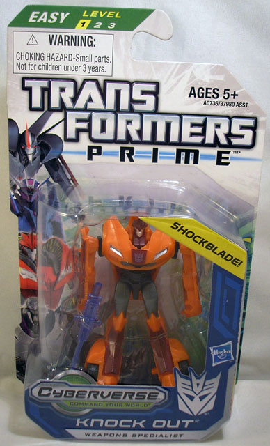 Name Reuses: The name Knock Out was reassigned from Knockout (1990), Armada Knockout (2002), Energon Knock-Out (2004), Movie Knock-Out (2009), and Stealth Force Knock Out (2011). |