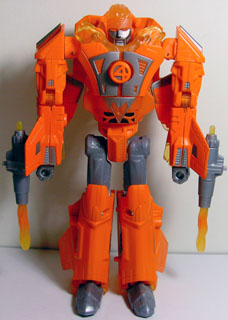 | Unlike the other battle suits built by Iron Man, the one belonging to the Human Torch doesn’t quite require its own power source. Instead, it is powered by Johnny Storm's flame powers. His nova flame is channeled through its engines to give it thrust, and through its weapons to allow it to fire powerful, superheated flame missiles. |