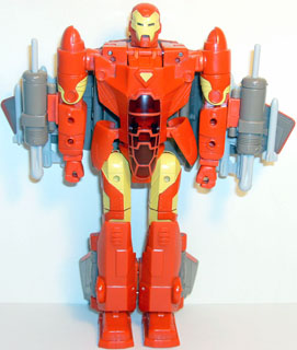 | The very first battle suit developed by Iron Man was his own. It is the only one of the mechs built so far that can fly in both modes. It is also extremely powerful in battle, with a huge array of lasers, missiles and other weapons. Iron Man also incorporated an override system that lets him take remote control of most of the other battle suits he has built. |