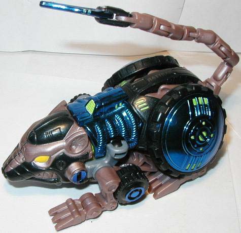 Following the quantum surge, Rattrap gained the advantage of a meched-out armor shell and a swift dragster vehicle mode. A top-notch soldier, his fellow Maximals rely on his reconnaissance reports to locate enemy outposts. The new hot rod mode has increased his speed and agility on the battlefield, and a powerful, battle-whip blade that he wields while in robot mode has made him a powerful adversary to all Predacons.