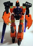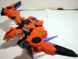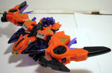 After the Great War, most Decepticons who were granted amnesty simply retired, no longer wanting any part of the age old conflict. Laserbeak, not satisfied with the idea of wasting away on the outskirts of Cybertron, found a new calling when he was contacted by Divebomb, a Preacon that was long thought deactivated. Offering both a new form and a new purpose, Laserbeak, along with Ravage and Buzzsaw, accepted the offer and was reprogrammed and rebuilt as a Predacon. Though Ravage became dissatisfied with his role and left to serve the Tri-Predacus Council, Laserbeak, like Buzzsaw, stayed loyal to his benefactor. In beast mode, LAserbeak can travel up to 400 mph. His twin crystal blades can slice through 5 inch thick plate steel with relative ease. While more comfortable in beast mode, Laserbeak has become quite adept at piloting different starships through space. With his comrade, Buzzsaw, Laserbeak continues to work in secret towards bringing about the day when the strong elements within the Predacon population will rise up and seize power away from those who have made peace, not war.