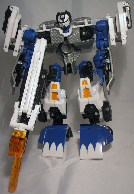 Longarm just wants to help. Whether it's hauling a stuck car out of a ditch or providing covering fire for a flanking action, as long as he's providing assistance to others you'll see a big grin on his face. That is, after all, what being an Autobot is all about - helping, saving, protecting. He just doesn't get the Decepticons. They all seem so selfish. It doesn't make sense to him why anyone would want to live like that. It would be so tiring to be so mean all the time.There are no known variations of this figure.