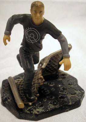 Against the combined assault of Barricade and the Decepticon Frenzy, a pair of humans has no chance of survival. And yet, Sam and Mikaela are faced with exactly those odds. The monstrous robots demand that Sam surrender the ancestral artifacts, forcing Sam to try play playing for time while he figures out what to do. Little do the two humans know that even as they back away from almost certain doom, Sam's secret protector Bumblebee races to the scene to rescue them. There are no known variations of this figure.