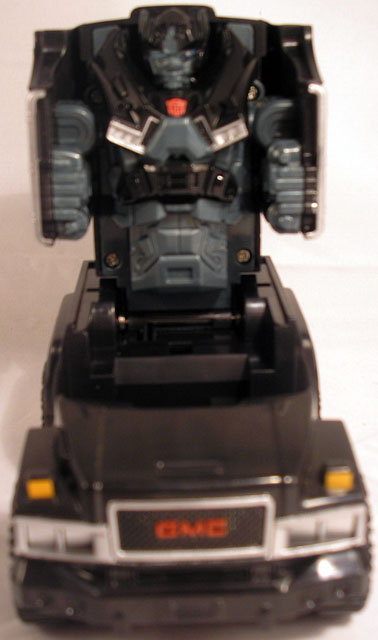 Slam this robot down and watch it go in full Topkick truck mode. As it rolls along, the robot pops up! |