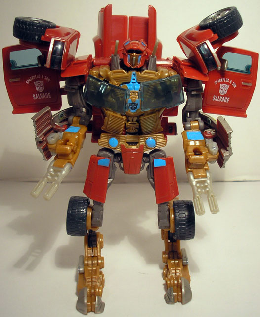Another of the new Autobots brought to life by the final, energetic bursts from the Allspark, Salvage doesn’t really have a lot of ambition. Before being brought to life, he worked with Sparkplug & Son Salvage, and he’s pretty sure he was happy then. He’s certain he’s happy now, with a load of scrap in the back, and Sparkplug’s hands in their accustomed place on his worn old steering wheel. It’s a simple life, but it’s one he prefers to hunting Decepticons and fighting all the time. |
