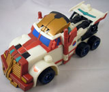A decisive leader who is never afraid to take action, he commands the instant respect and loyalty of every soldier he takes under his wings. With a razor sharp mind, and a reputation for rescuing troops under his command from disastrous situations, Thunderclash is considered an ideal mentor to initiate new recruits into the Autobot ranks. Determined that all of his work be marked with excellence, he encourages those who serve under him to become the best soldiers that they can be. Ever mindful of a looming civil war between Autobots and Decepticons, Thunderclash monitors the outer rim territories onboard his ship, the Eight Track, and frequently trains his crew for a possible Decepticon assault. When engaged in combat, his weapon of choice is a high-powered hand-held mortar capable of launching plasma shells a distance of up to 10 kilometers. In robot mode, his shoulder cannons will introduce any adversary in his way to his unique 12-missile-power defense system. |